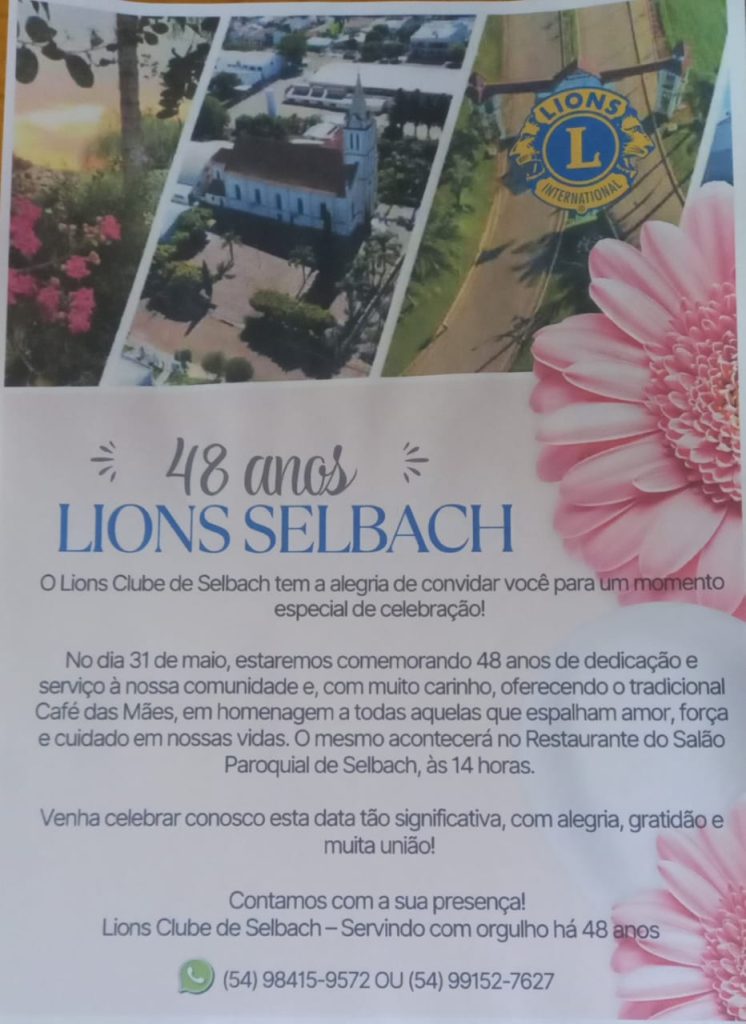 Geral48 anos do Lions Selbachpor Princesa ADMatualizado em 28/05/202528/05/2025Deixe um comentário em 48 anos do Lions Selbach SIGA NOSSAS REDES SOCIAIS PELOS LINKS BAIXO! WhatsApp CLIQUE AQUI Facebook CLIQUE AQUI Instagram CLIQUE AQUI PAPO 110 – A saúde do homem Nutricionista Juliana Kohler Bonato, fala no dia mundial de combate a Diabete Laboratório Vida e Saúde, Novembro Azul e a Saúde do Homem VEJA TAMBÉM: ARCA DE NOÉ – Quartos e corredores e o exato tamanho relatado na BÍBLIA ou veja aqui O VULCÃO mais antigo do MUNDO fica no BRASIL ou veja aqui Como é PARTICIPAR de uma CORRIDA de RUA? ou veja aqui Veja Também:Pedágio do Lions Club em SelbachAções de Selbach contra a dengueExtensionista rural da Emater de Selbach fala sobre…Presidente do coral Renascer da melodia convida para…Prefeito Michael fala sobre a expectativa para a XV…Alunos da escola Adão Seger turma 21, falam sobre…