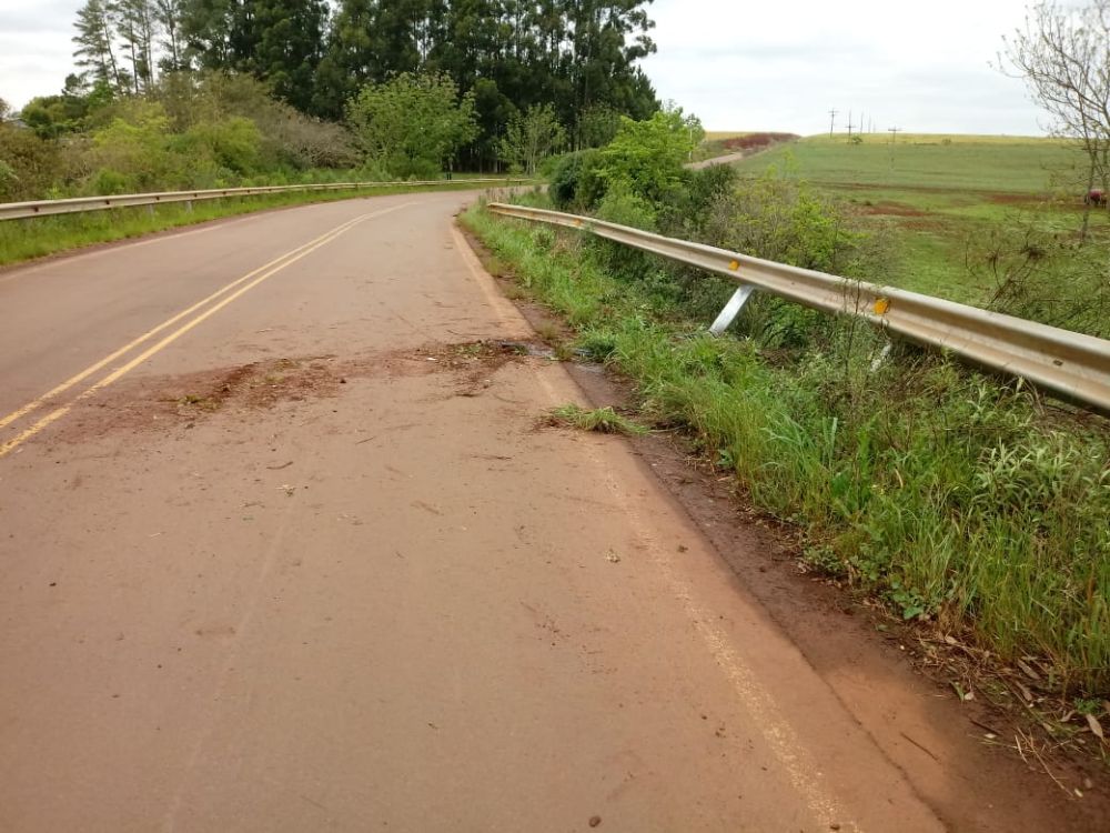 A poucos instantes, um HB20, com placas de Colorado, perdeu o controle de direção vindo a bater no guard rail. O acidente aconteceu na VRS 402, na famosa curva do “S”. A condutora foi socorrida e conduzida ao Hospital São Jacob, com escoriações pelo corpo e passa bem.