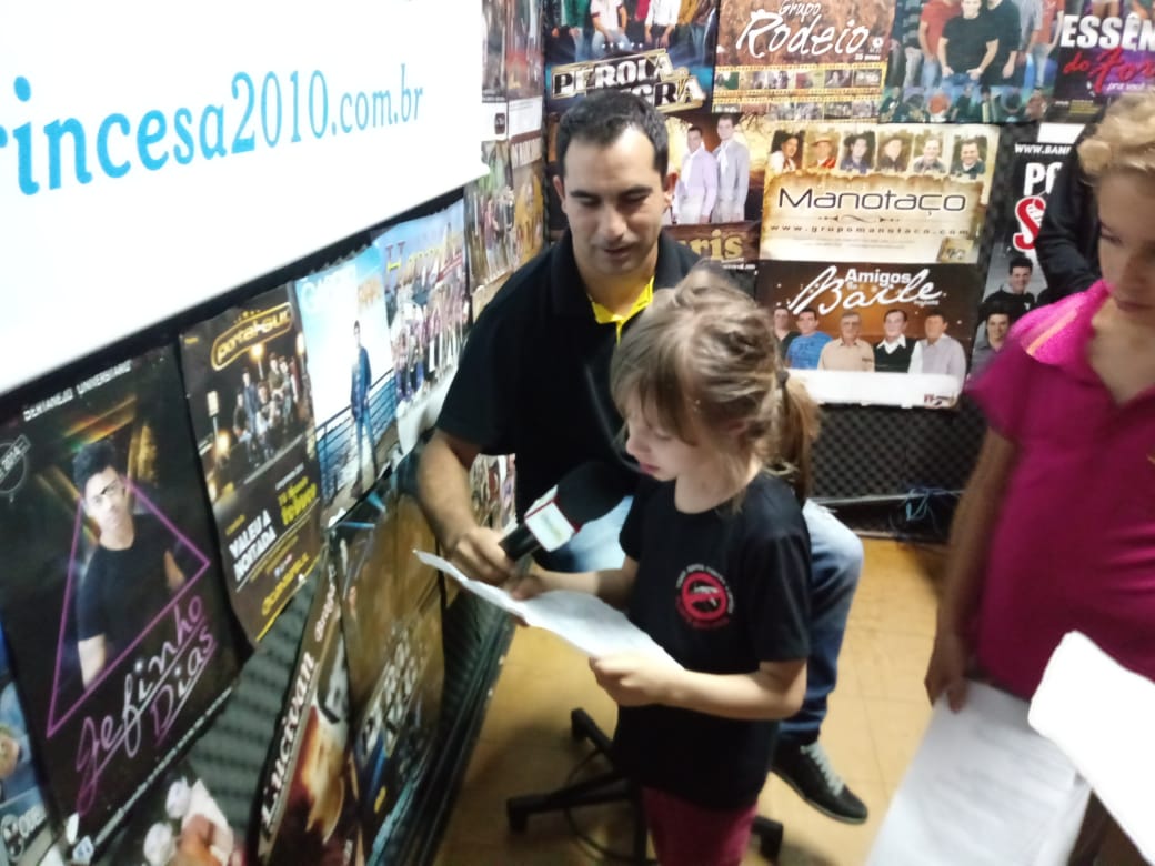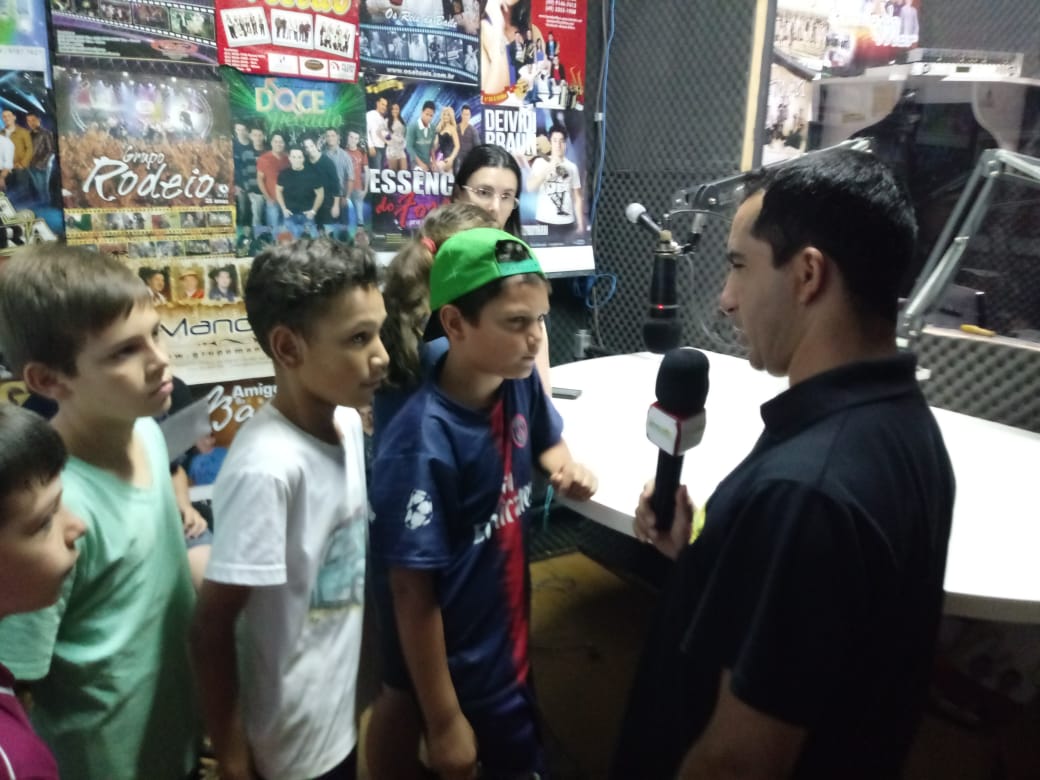 Os alunos do 3º, 4º e 5º ano da EMEF São Luis de Bela Vista, estiveram na tarde desta quarta-feira (07) participando do Projeto Rádio Escola.