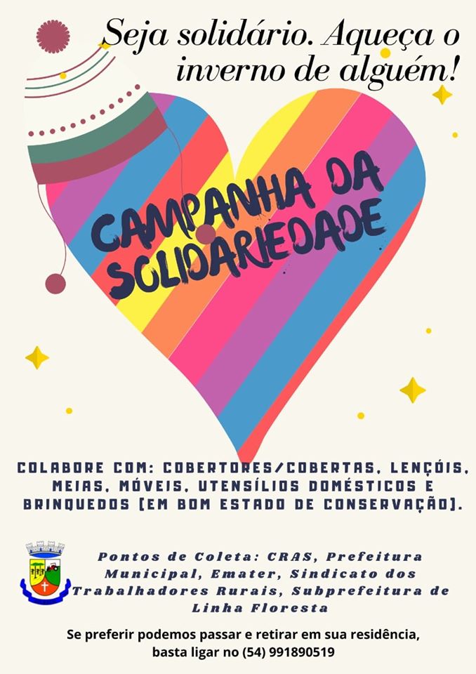 Pontos de recebimento: CRAS, Emater, Sindicato dos Trabalhadores Rurais e Subprefeitura de Linha Floresta.
