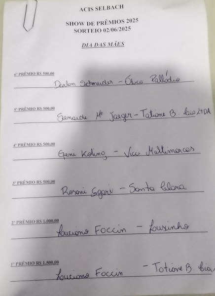 GeralConfira os contemplados show de prêmios da Acispor Princesa ADMatualizado em 04/06/202504/06/2025Deixe um comentário em Confira os contemplados show de prêmios da Acis VEJA TAMBÉM: Arca de Noé encontrada tem quartos e corredores e o exato tamanho relatado na Bíblia VEJA EM VÍDEO NO NOSSO CANAL DO YOUTUBE “Viagens de Ariel” – Clique na IMAGEM acima ou aqui (Data da estreia do vídeo no canal: 31/05/2025 as 20 horas) O VULCÃO mais antigo do MUNDO fica no BRASIL ou veja aqui Como é PARTICIPAR de uma CORRIDA de RUA? ou veja aqui Veja Também:Atual presidente da Acis, Rene Juliano Kolling e…ENCERRAMENTO do ANO da ACIS e Ganhadores do SHOW de PRÊMIOSConvite do presidente da AcisConfira o papo 110 de hojeConfira a programação da XVI BlumenfestConfira os resultados do 2º Torneio do Selbach Padel Club