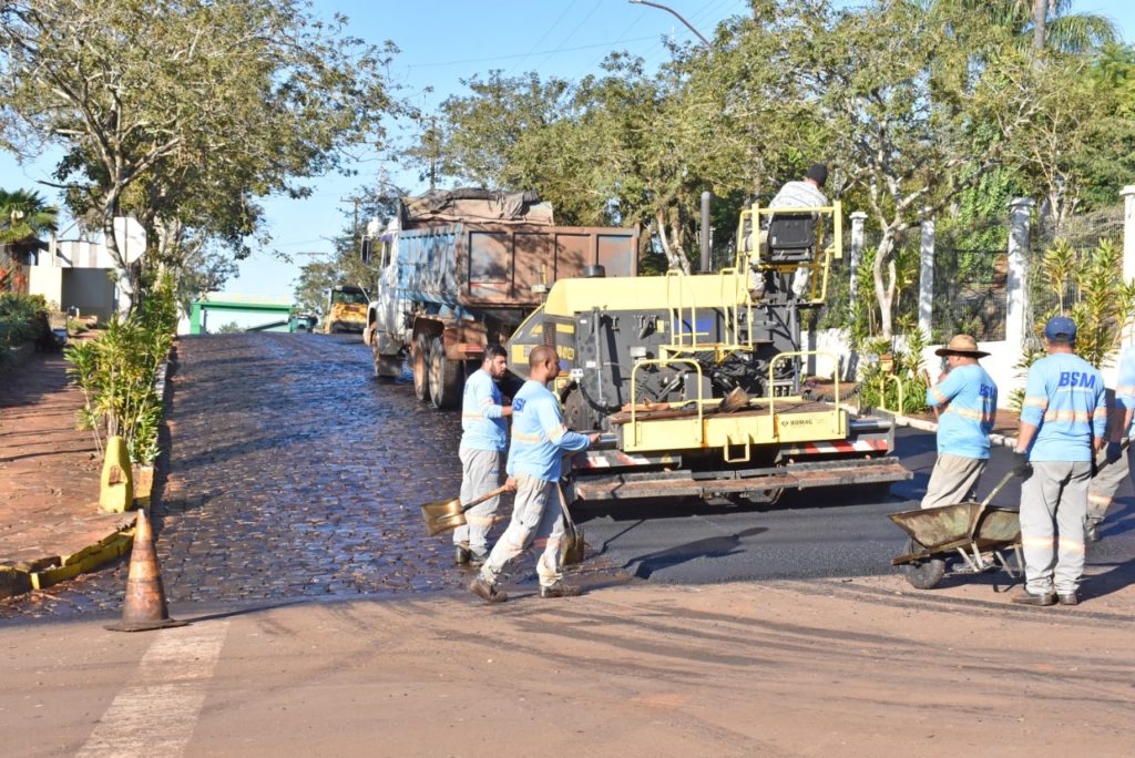 As estradas do interior com as chuvaradas dos últimos dias e o asfaltamento que continua na área urbana em Selbach, sob o relato do secretário Gilson Maldaner.