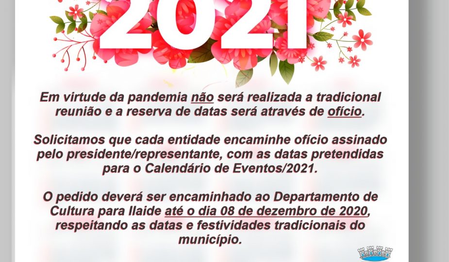 Informação importante sobre o Calendário de Eventos 2021