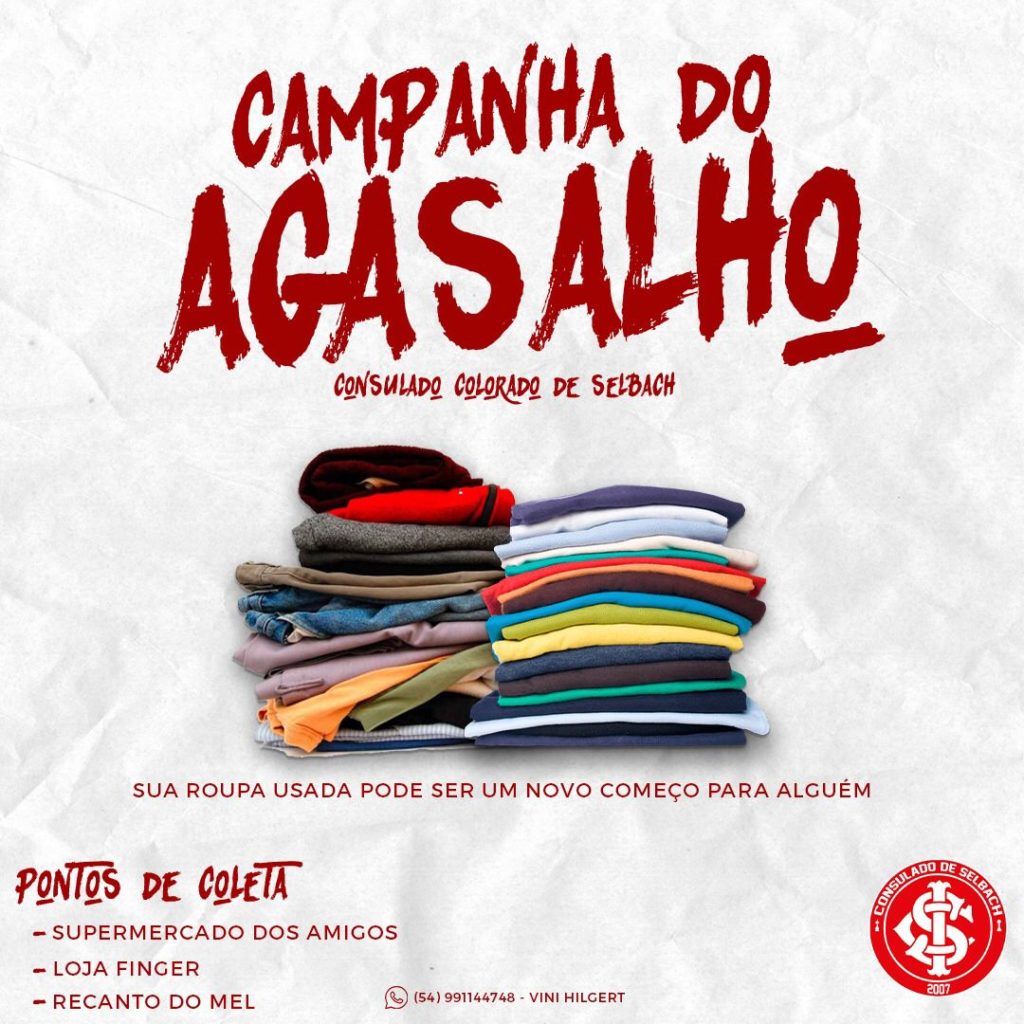 O consulado do Inter em Selbach, está na campanha do agasalho 2022. Ajude. O cônsul Vinícius Hilgert chama a todos para abraçem esta partida de solidariedade, fora do campo, mas dentro da casa de muitos selbachenses.