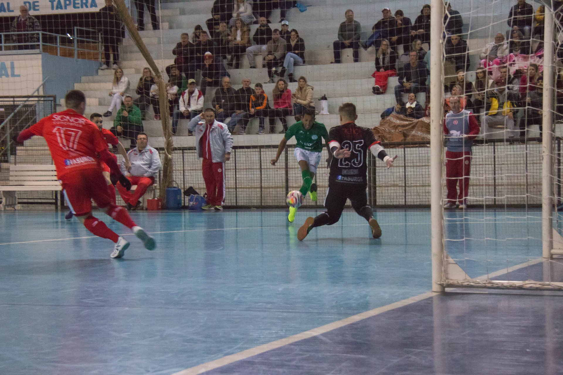 Na sexta-feira (02), no Poliesportivo em Tapera (RS), aconteceu mais um clássico válido pela Liga Gaúcha Futsal. América e SASE ficaram no 1 a 1, em um jogo de dois tempos. Com este resultado o América permanece na penúltima colocação (10º) e a SASE continua no grupo da frente, em 4º.