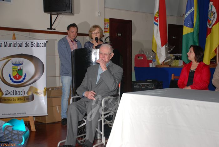 Na tribuna, a filha Inês leu o agradecimento em nome do pai e nele relatou parte da história destes 50 anos de Selbach município: