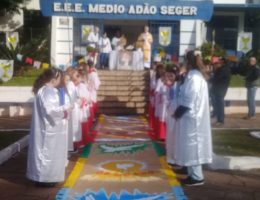 A missa começou na escadarias da igreja São Jacob de Selbach, percorrendo os tapetes e as paradas. Padre Aloísio falou do resgate permanente da fé no corpo e sangue de Jesus. Talvez também interesse a você: ☕LIVE 20-06-2022 – CORRESPONDENTE ARIEL SELBACH COM AS INFORMAÇÕES DE PASSO FUNDO/RS E REGIÃO – Acompanhe as principais notícias …